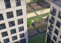 ЖК «Воробьев Дом» представляет собой квартал, состоящий из трех жилых построек переменной этажности. |